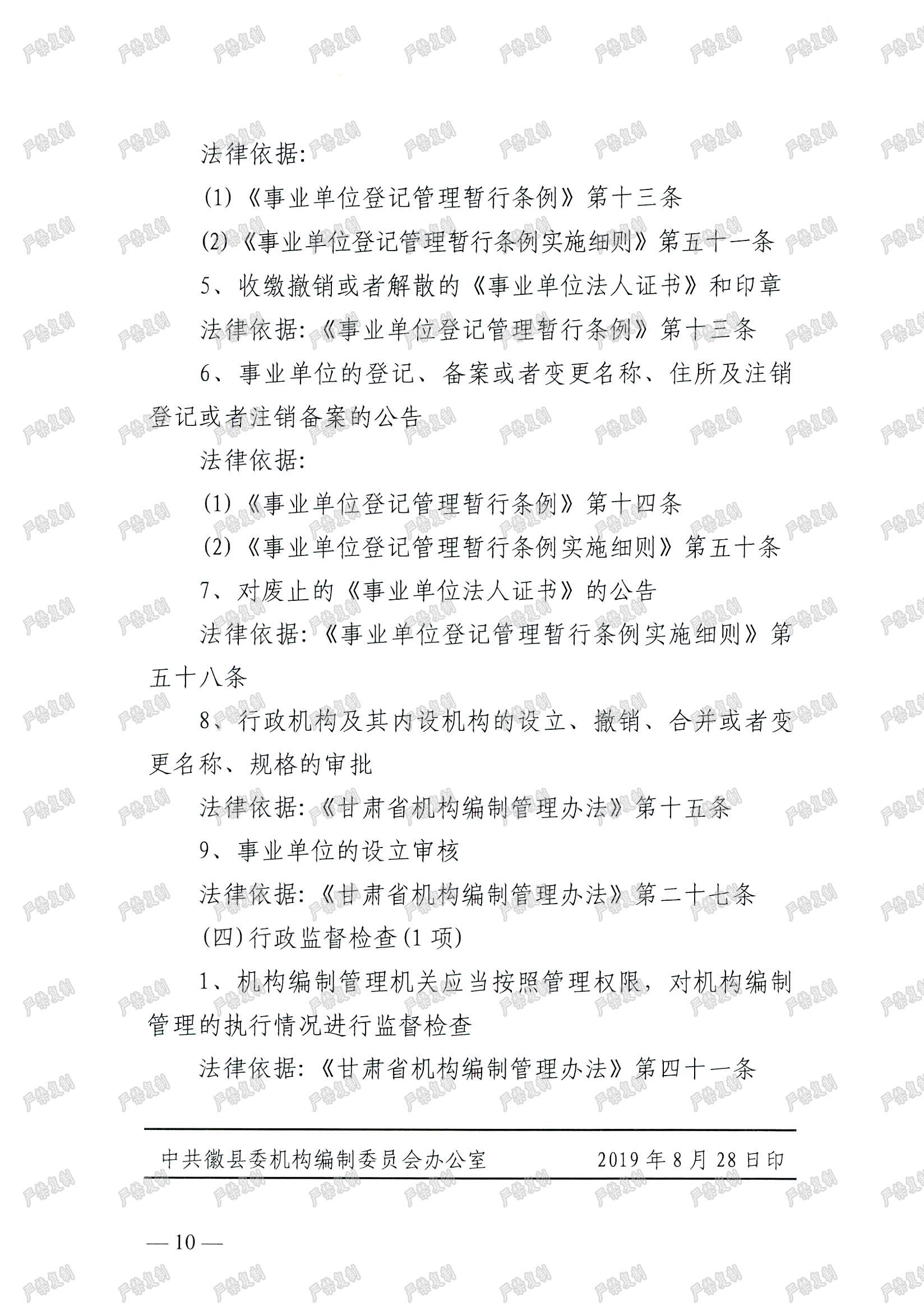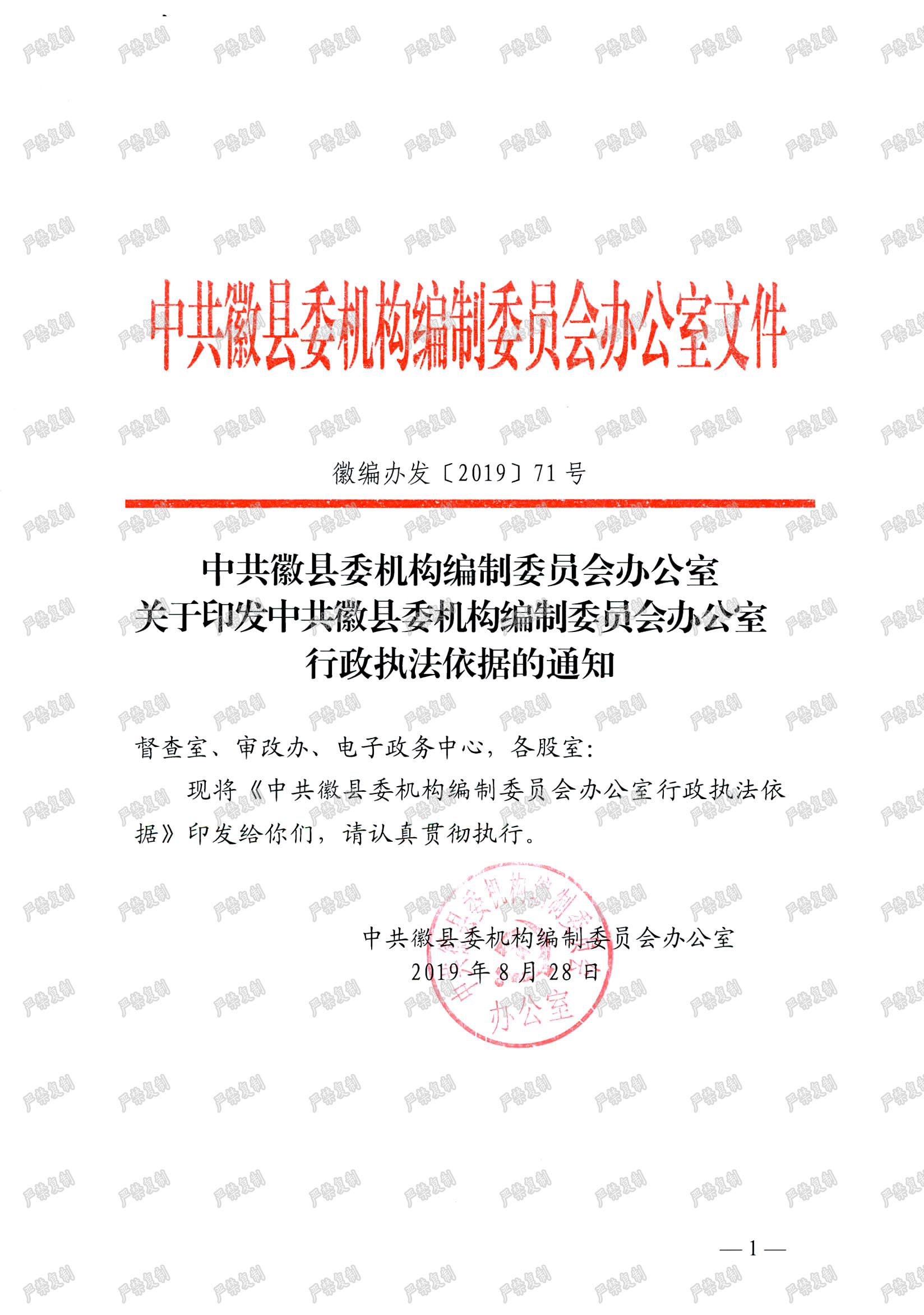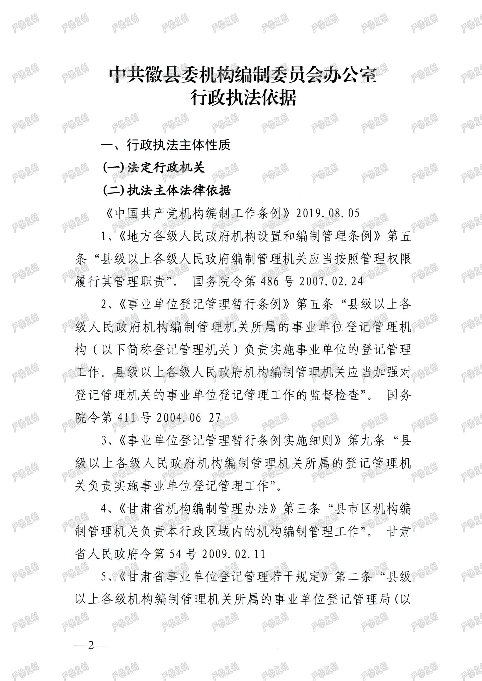 关于印发中共徽县委机构编制委员会办公司行政执法依据的通知