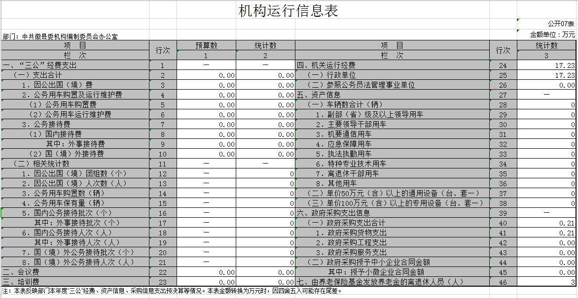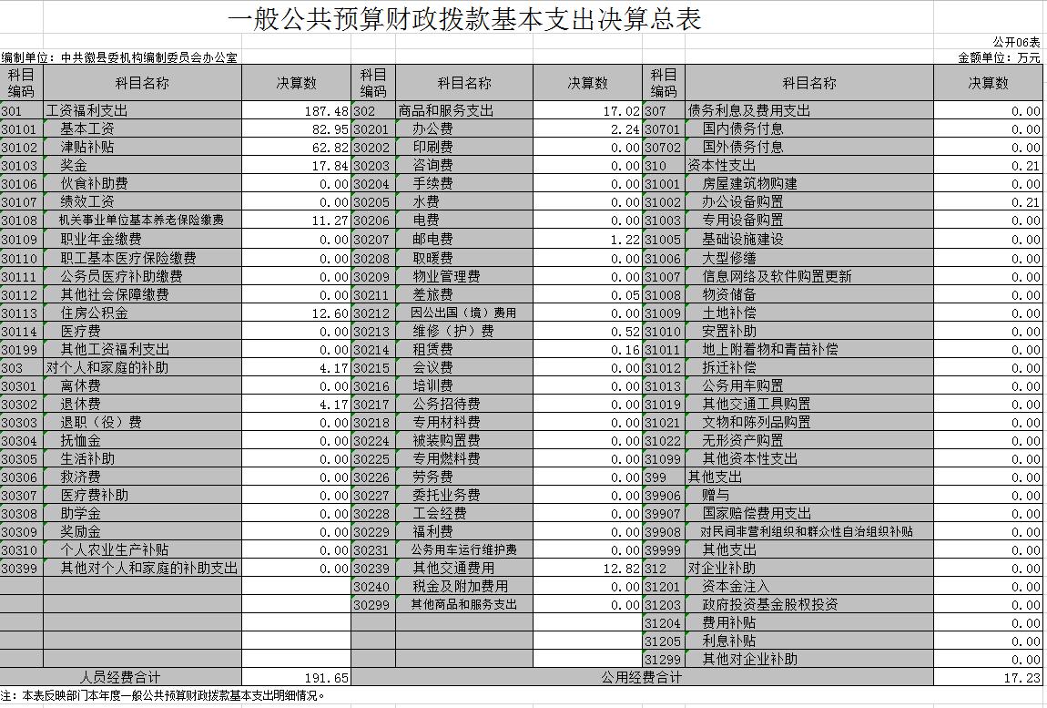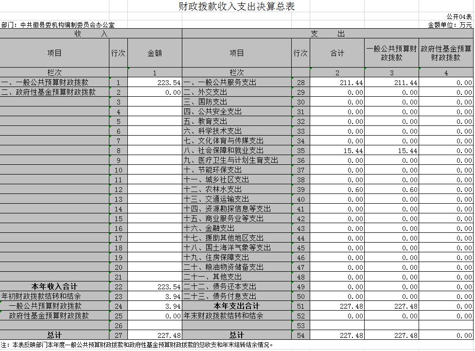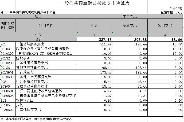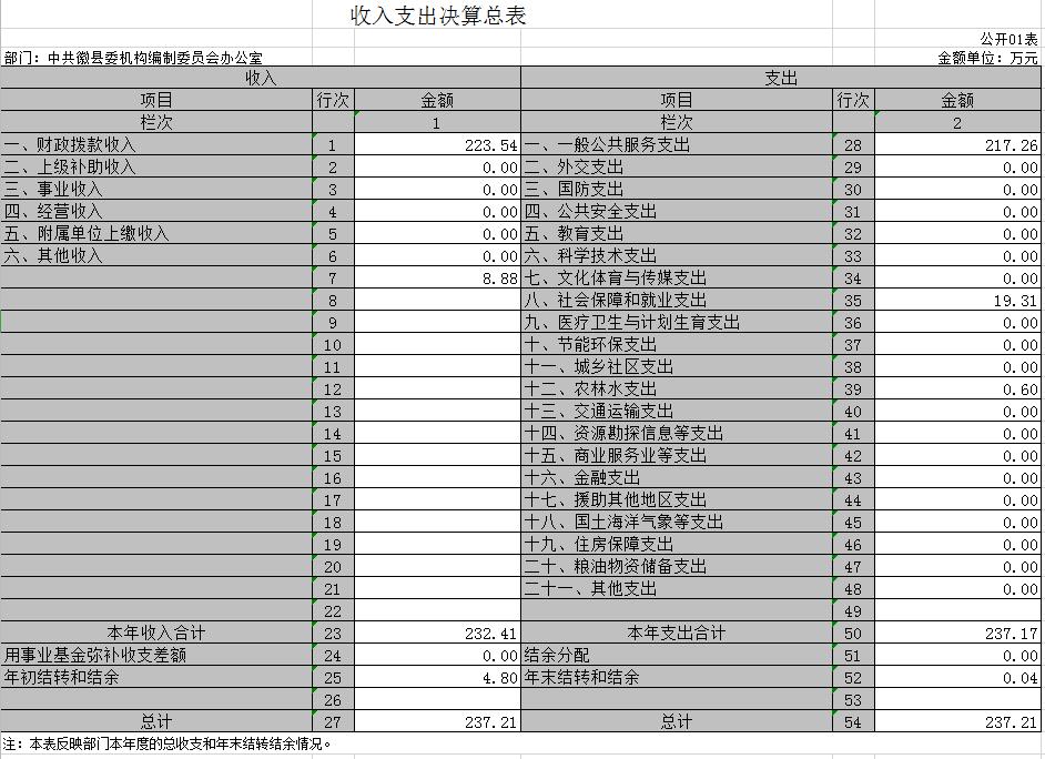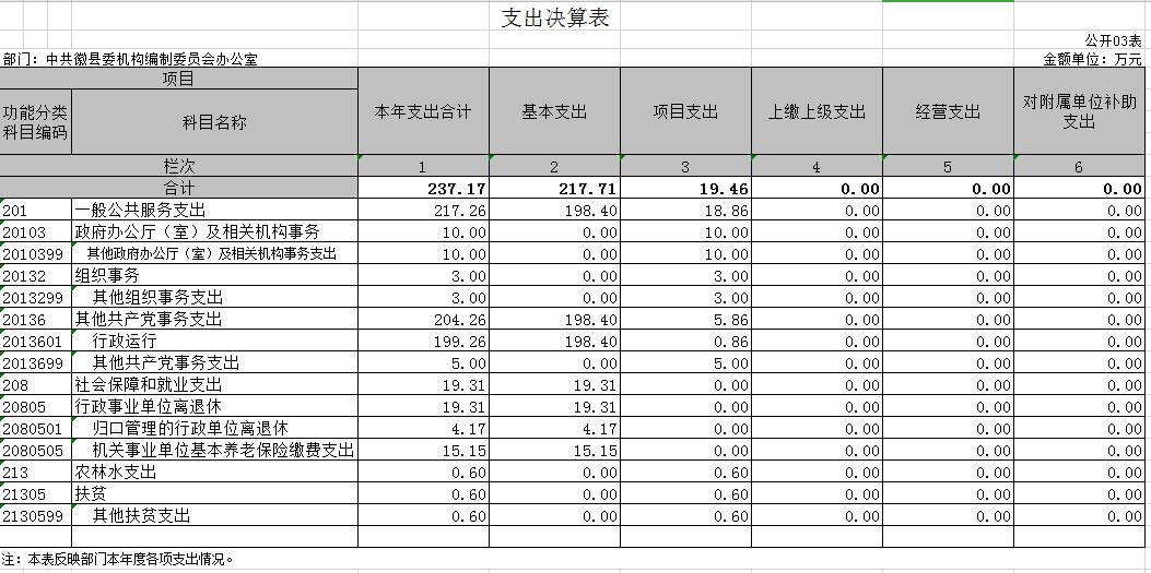 2019年度中共徽县委机构编制委员会办公室部门决算