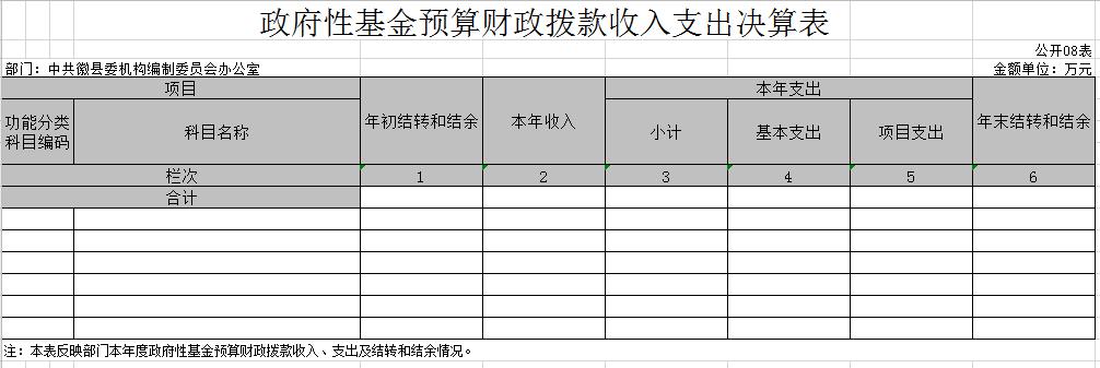 说明:中共徽县委机构编制委员会办公室没有政府性基金收入,也没有使用政府性基金安排的支出,故本表无数据。